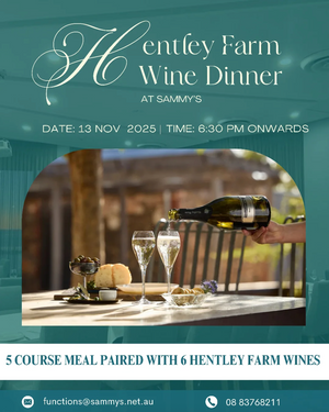 Experience an unforgettable evening by the sea as Hentley Farm partners with Sammy’s on the Marina for a five-course dinner paired with six of our premium wines.